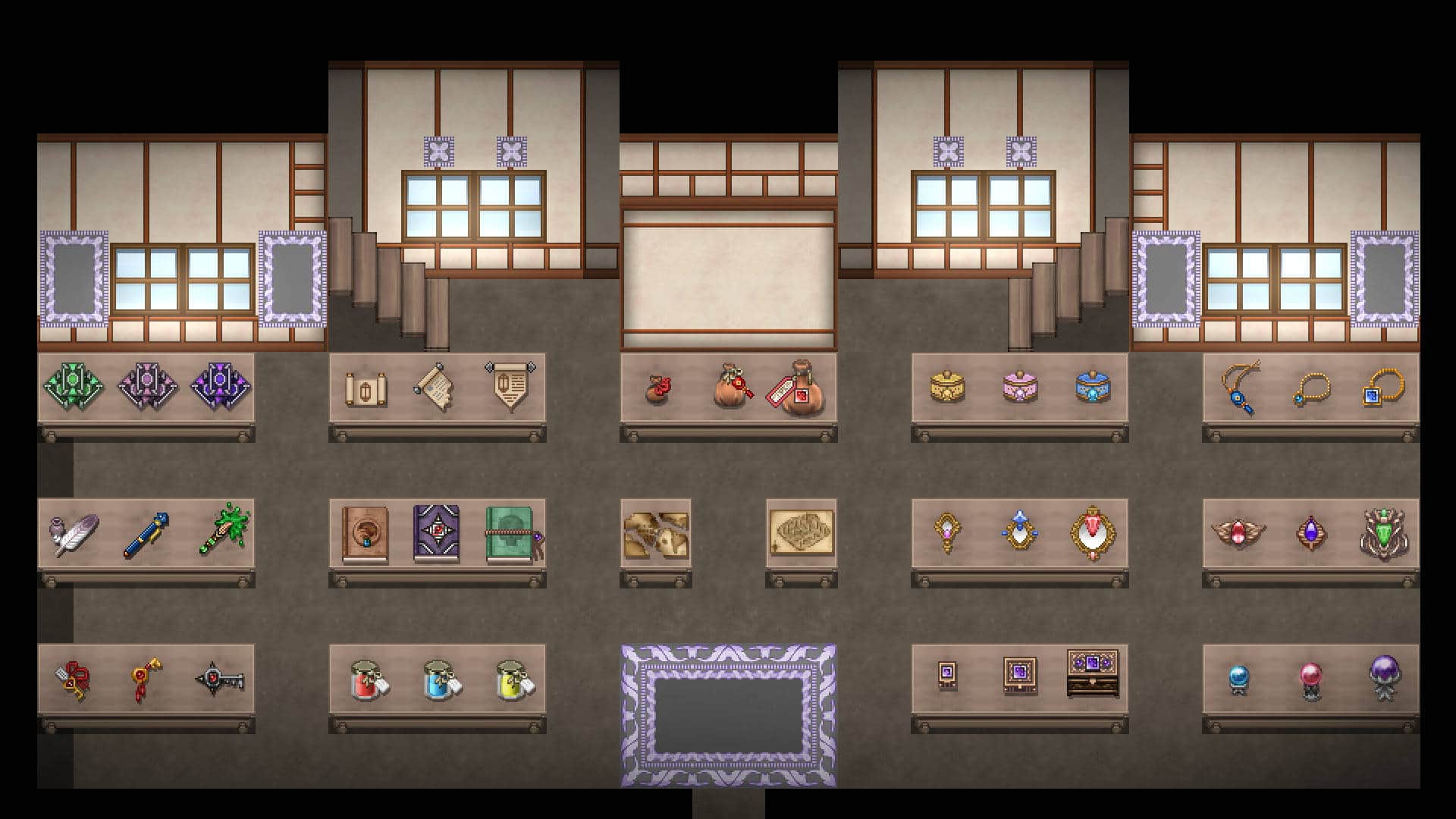 ファンタジー系マーケットの魔法道具ショップ制作用タイルセットを収録しています♪